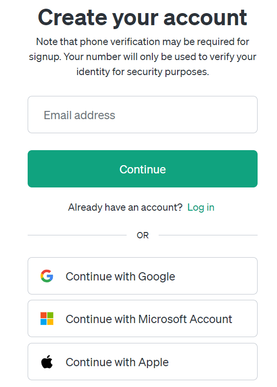 ChatGPTには無料版と有料版(Plus)がありますが、いずれを利用する場合でも、アカウントの登録が必要です。